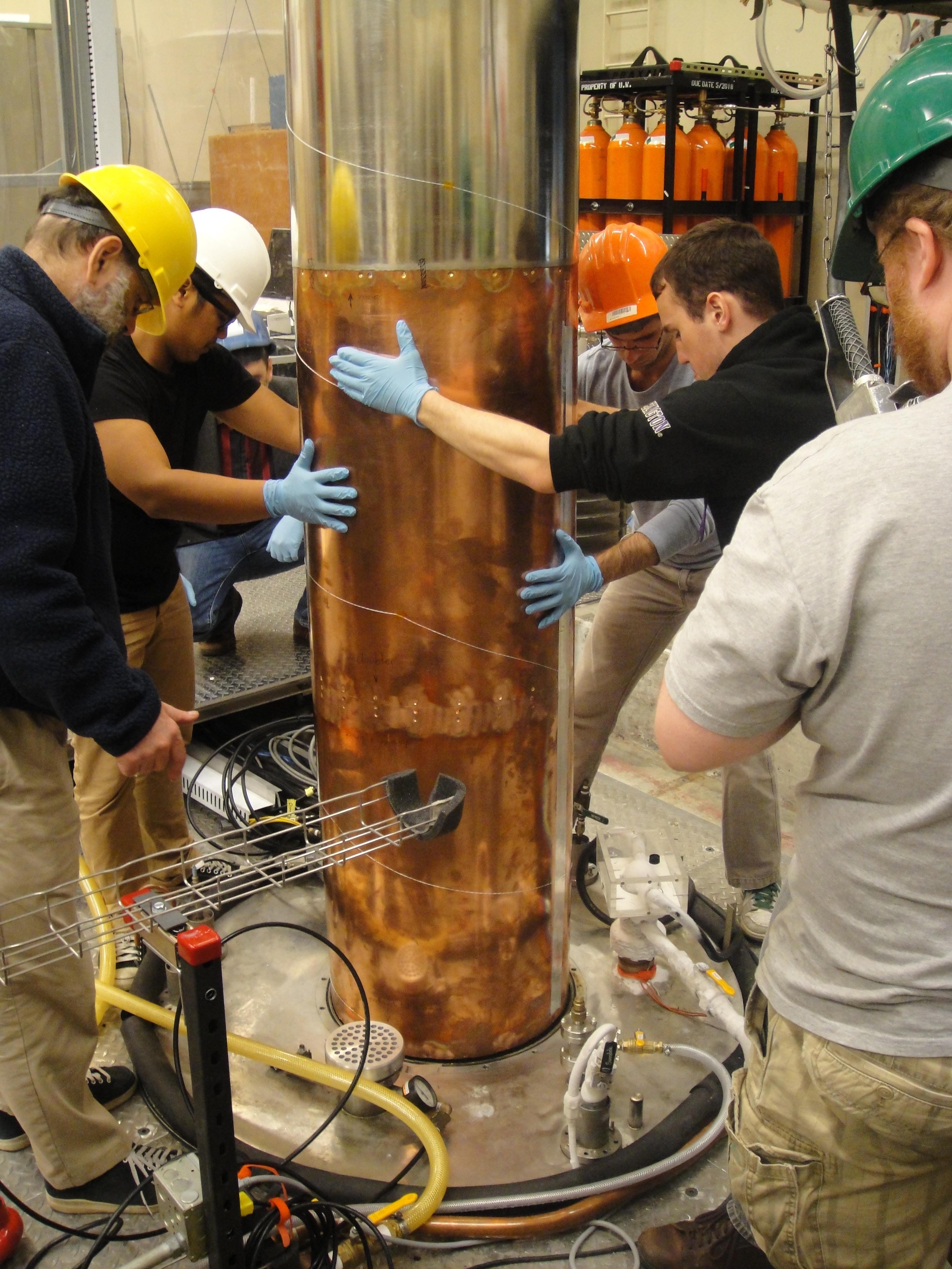 Installation of the insert chamber into the magnet of the ADMX, October 4, 2013.